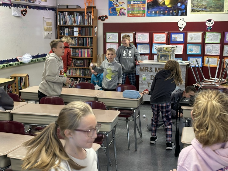 Snowball fight! Fifth graders had two rounds of snowball fights to learn how to use a sentence starter with a piece of evidence to prepare for an argumentative writing. Then they had to add a second sentence to elaborate. ❄️📝